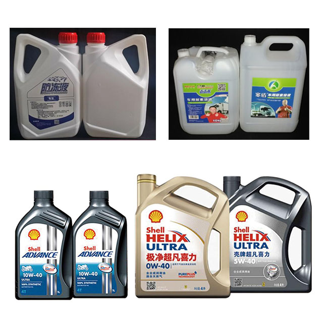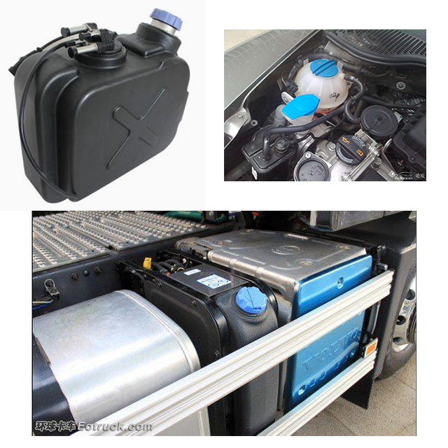 Lubricant bottles, truck urea tanks, engine-oil containers, on-board toolboxes, warning-triangle cases, and similar items, predominantly HDPE.